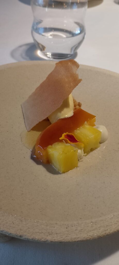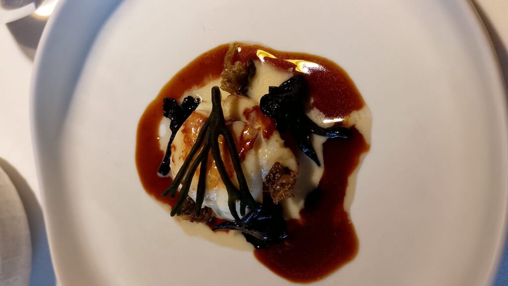 Hi vaig anar ara a finals de novembre, que ja començava a fer aquell caloret de tardor-hivern, i ens vam llançar de cap al Menú Tradició. Són unes 12 elaboracions, que es diu aviat, però t’atipes segur. El xef és en Gerard Fortuny i el que fa mola perquè és la cuina de tota la vida, la que ens agrada, però “repassada” o reinterpretada, saps? Té aquest punt modernet però sense que et quedis amb gana o no sàpigues què estàs menjant.